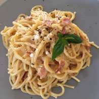 Breakfast All DayFried egg with minced pork & Chinese sauage with toastไข่กระทะ และขนมปังปิ้ง 120.- French Toast | ขนมปังชุปไข่ทอด 100 .- Bread and Butter/Jam | ขนมปังปิ้งกับเนยและแยม 55 .- Pasta and Noodles พาสต้า ก๋วยเตี๋ยวPadthai with shrimp | ผัดไทยกุ้งสด 160.-Spaghetti Bacon galic chili | สปาเก็ตตี้เบคอนพริกแห้ง 165 .- Spaghetti Cabonara | สปาเก็ตตี้คาโบนารา 180 .-